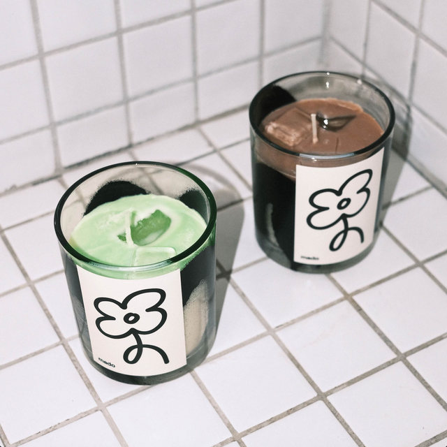 Bougies artisanales coulées et taguée à la main par Mado pour un objet unique à la maison.